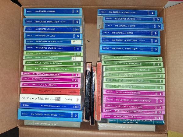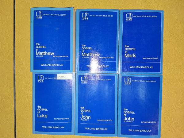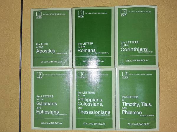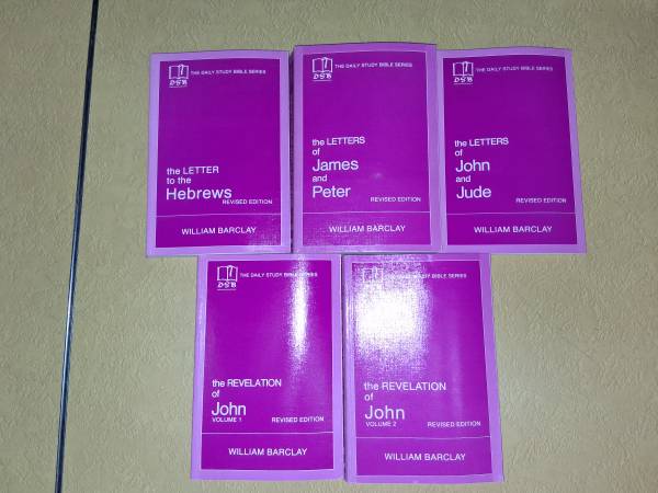 Minimal wear and tear. The William Barclay Daily Study Bible is a comprehensive 17-volume set providing detailed commentary on the New Testament, this Bible set includes insights from author William Barclay, focusing on religious and spiritual topics. Each volume is bound in softcover wraps, making it a convenient and accessible resource for students, seekers, and individuals looking to deepen their understanding of the Bible.