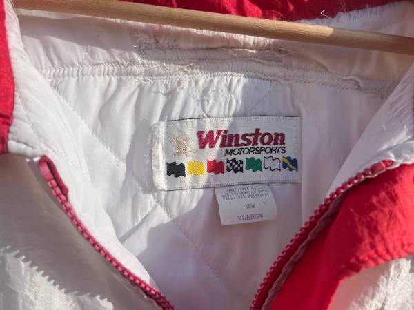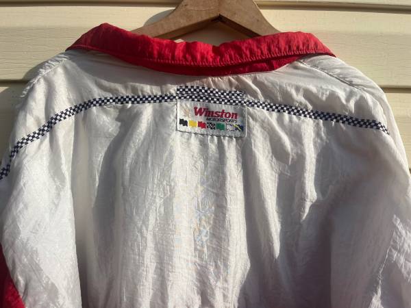 Excellent condition lightweight Men’s XL (true to size) early-mid 90’s rare Winston Cup Jacket. No stains, marks or tears. Zipper and buttons in perfect working condition. Non-Smoking Family.