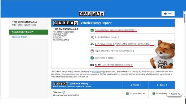 ★ ONLY 1-OWNER. . .1999 G.M.C. SONOMA . . .★ ONLY 54,121 ACTUAL MILES