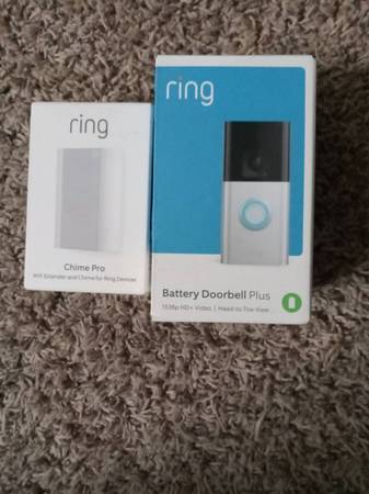Battery doorbell plus and a chime pro wifi extender and chime combined. Boxes still sealed. Selling because of financial difficulties.