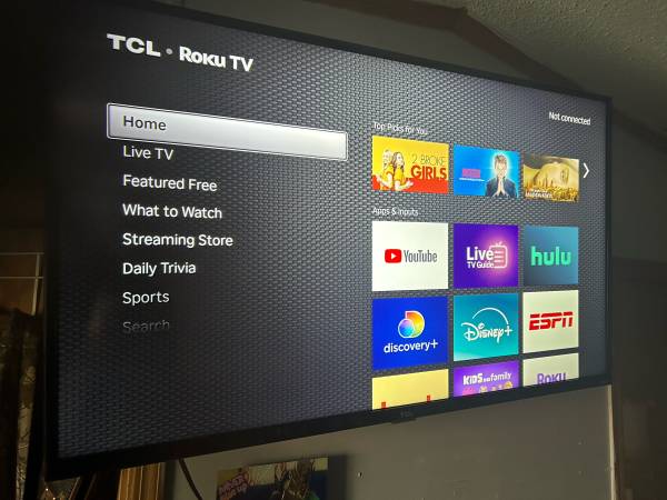Roku TV 55 inch TCL, Roku remote, wall mount included and sandbar Bluetooth speaker