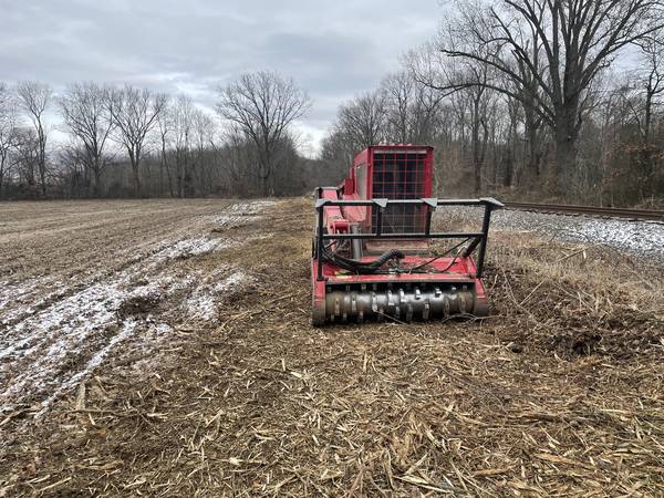 Tree limbs that overhang cropland and roadways are cut with a high-speed saw up to 24' off the ground. Cuts are clean and not torn as an excavator might do. Rights-of-way, food plots, crop boundaries and roadways can be trimmed to allow sunlight in and allow vehicles to travel.