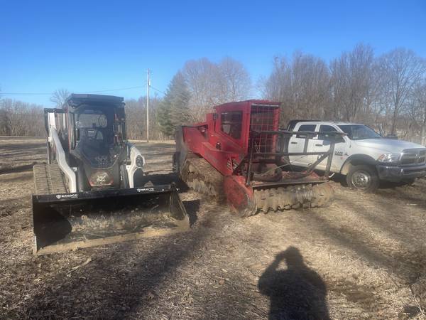 We have a smaller machine - a T76 Bobcat - that is much less expensive but capable of mulching and mowing up to 8" trees. It has multiple attachments as follows: