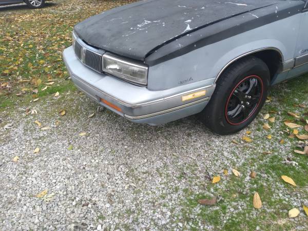 I have a full driveway and would like to make room. I have a great running little car with low miles. It's a 1989 Oldsmobile Cutlass Calais S with the Quad Four motor. The same horsepower and torque of a larger engine in a smaller car. It's got new tires, belts, suspension and exhaust. It was built when paint fell off cars so it's a bit ugly. It has almost NO rust. One spot where it looks like something got licked up in one wheel well. It has one small bump in the nose.