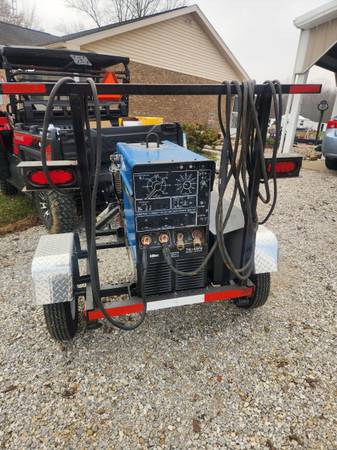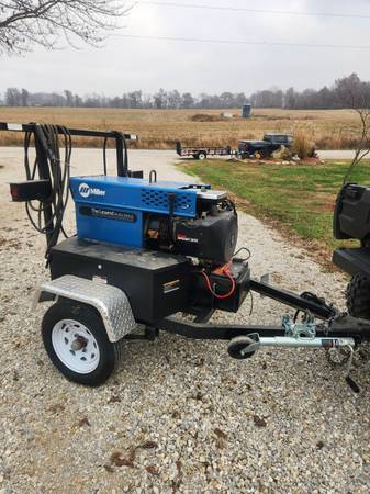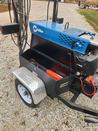 Miller portable welder. trailer with new tires tail lights tool box 2 tongue jacks. very nice welder. works great. has ground and stinger with cables.