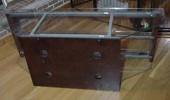 Glass TV Stand Measures 58in wide, 20in dept, and 21in high, 100.00 cash