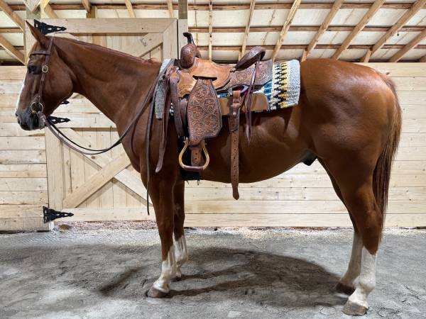 Apollo is a flashy stunning big bodied Quarter horse gelding. He’s approximately 15.1 hh and 7 yrs old. He’s a wonderful trail mount. He rides out alone or in a group. This gelding has his entire life in front of him being as young as he is and could go in numerous directions. He has impeccable ground manners as well. Apollo is phenomenal in the stall and when turned out. He loads and trailers well. He has had no health issues for us or lameness issues. Apollo has never cribbed or weaved. He’s located in Dobson, NC. We work with some wonderful transporters so delivery is available anywhere in the US. He comes with a coggins and a health certificate for transport. Please text or call if interested.