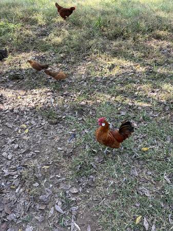 Hamburg Bantam Chickens. Young hens and roosters that were hatched this spring.