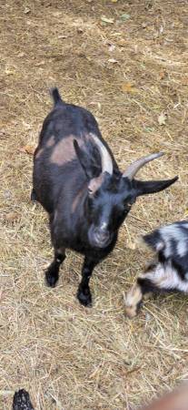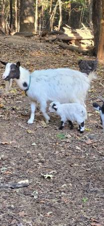 Nigerian dwarf doe and her buckling the doe is naturally polled and friendly. 250
