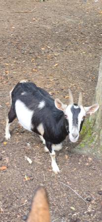 Moonspotted darker nigerian dwarf doe should be bred back not friendly she comes to feed but doesnt like to be pet 200