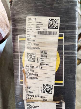 New in box Wood / Aluminum Pella Casement Window $150.00 Cash Frame width - 17" Frame height - 35" 4-9/16 Jamb Low E clear glass, Pella Tan / Clay aluminum exterior, Screens included Local Delivery...