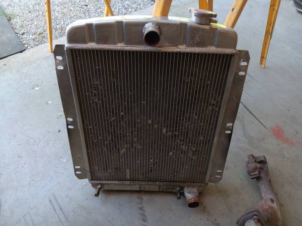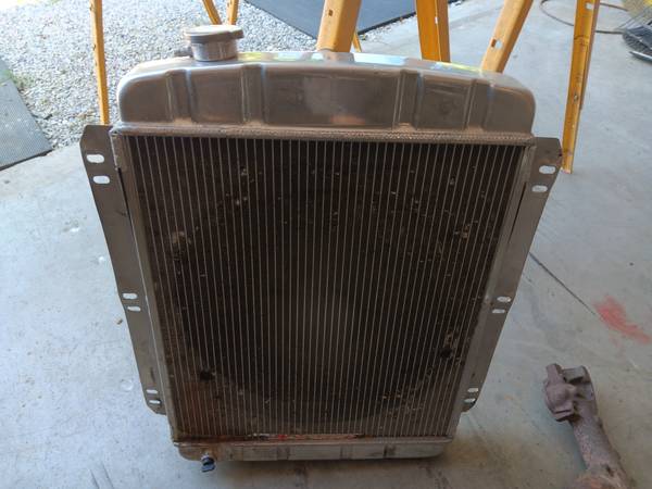 I have a aluminum radiator out of my 1950 chevy 3100 truck. Looks a rough but does not leak. Will work on other years to. If no answer please leave a message, I work odd hours. Thanks