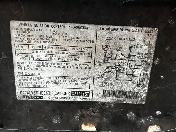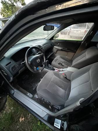 01 MAZDA protégé 4 Door with 1.6L motor with AUTOMATIC TRANSMISSION Car is junk but motor and trans is perfect Runs and drives No title. Text CASH ONLY TRANSACTIONS ACCEPTED!